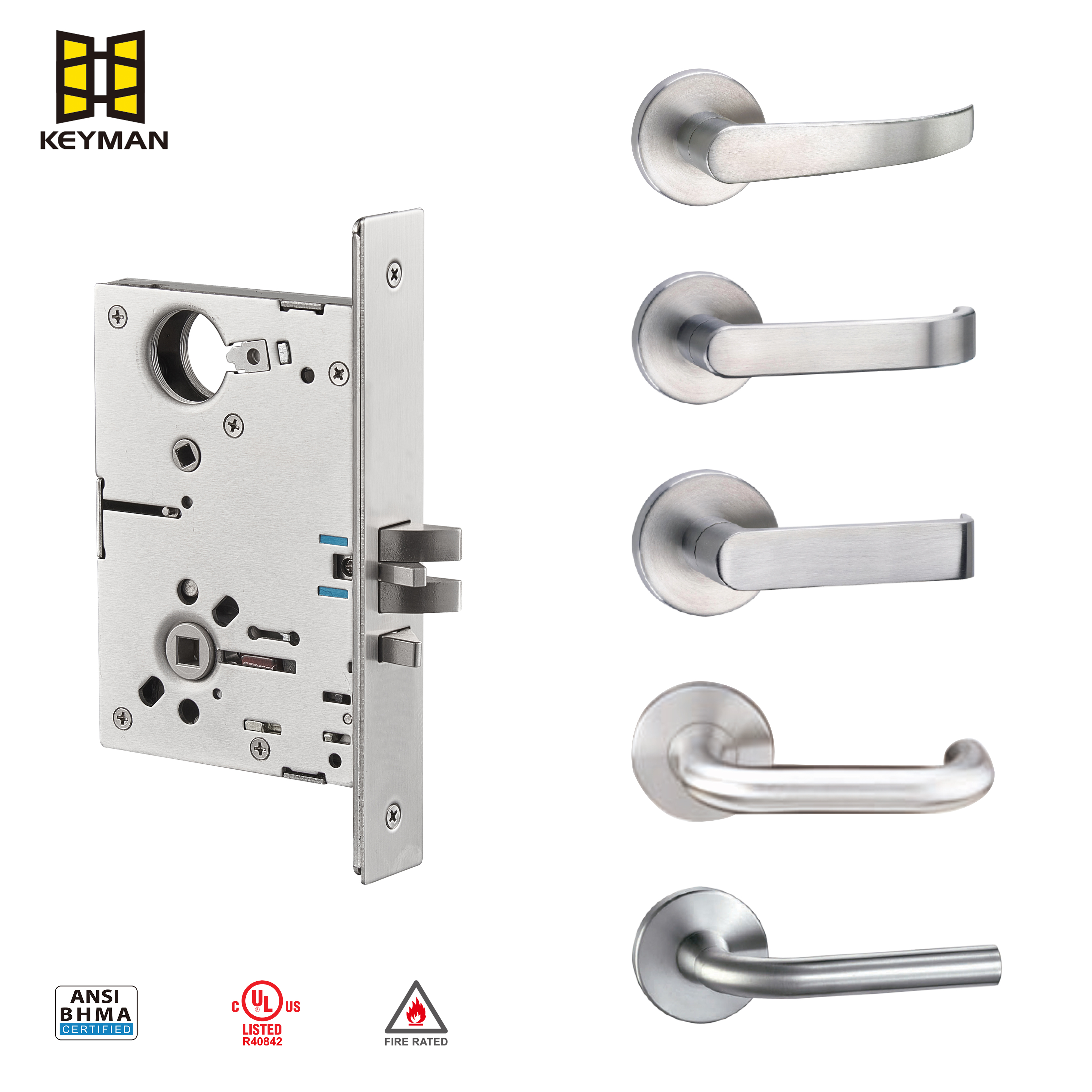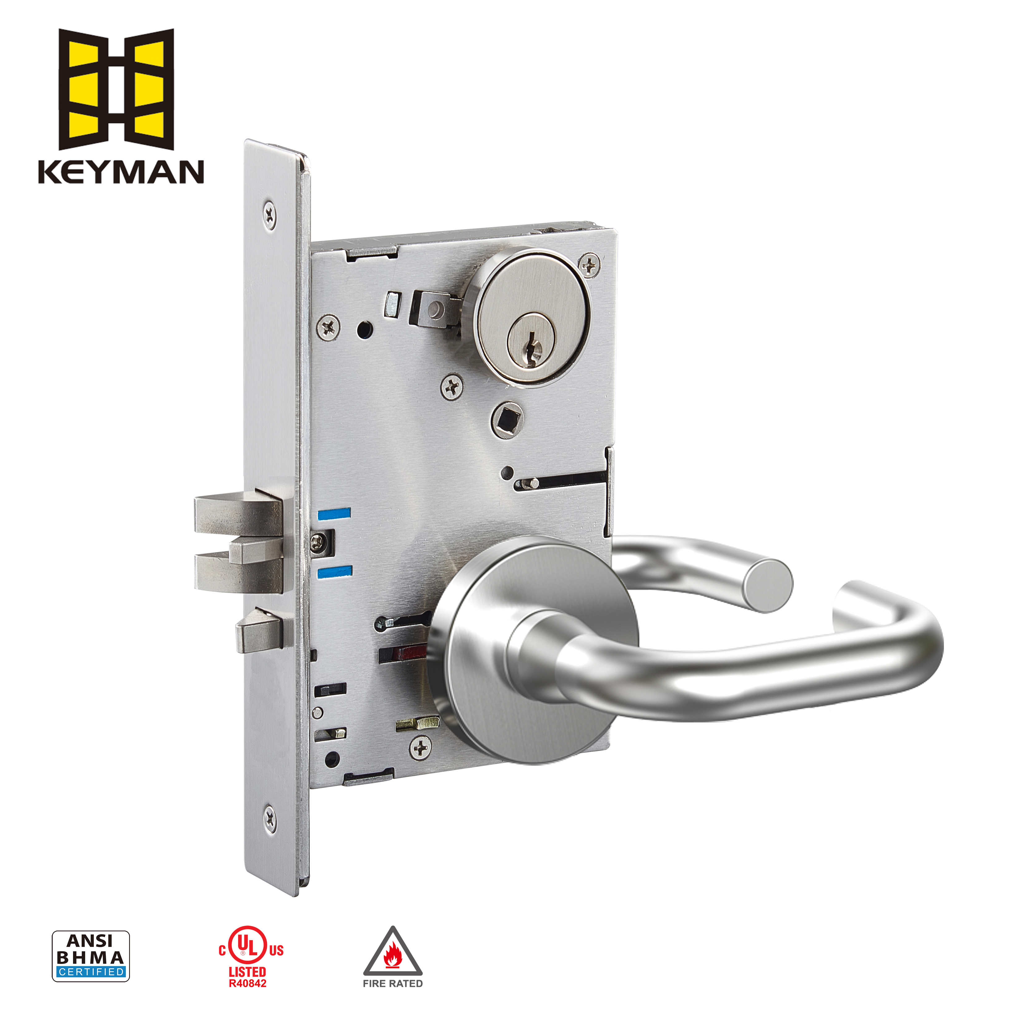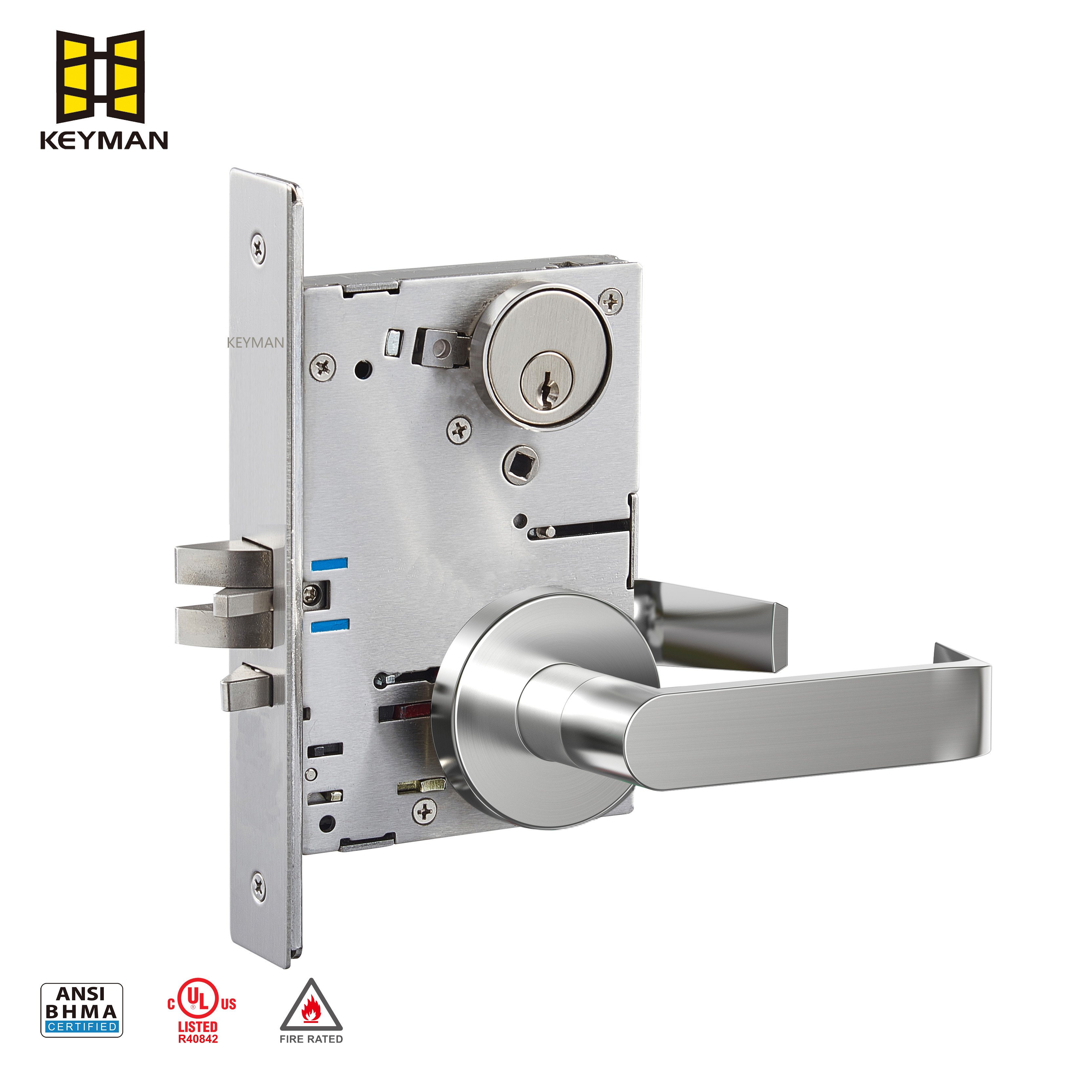 ANSI Grade I American American American Huchice Dutise Lock M701AS ، وهي شركة رائدة في مجال الأبواب ، توفر Keyman حلول قفل موثوقة ودائمة لتحسين الأمن في جميع أنحاء العالم.