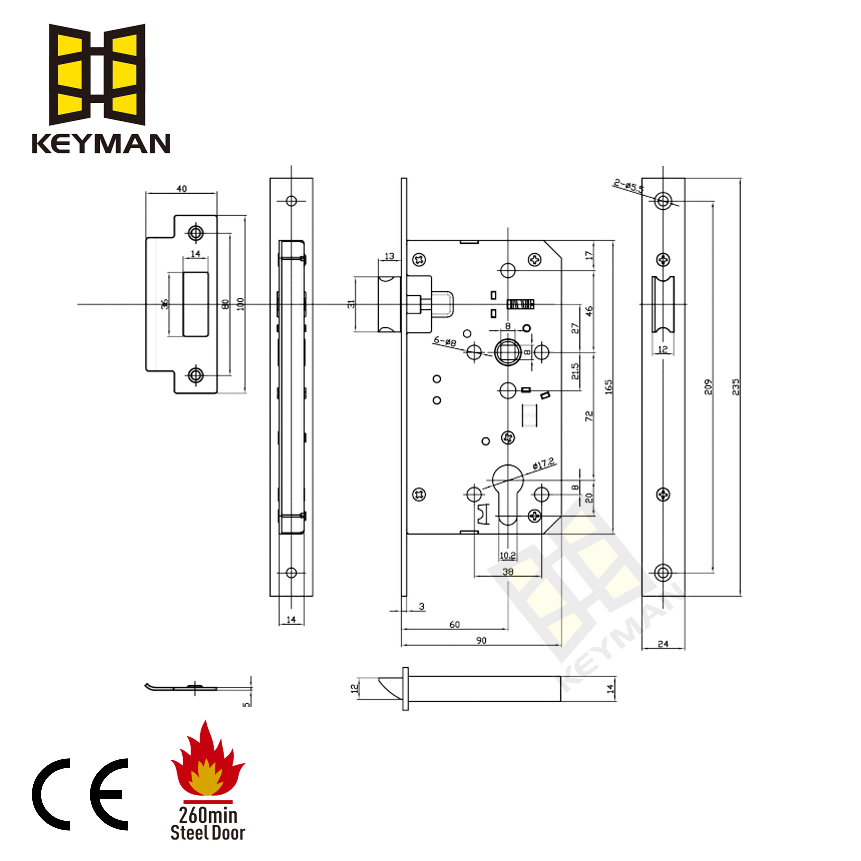 أقفال Euro Gurtise الخاصة بنا هي CE EN12209 معتمدة ، 260 دقيقة من الحريق الذي تم تقييمه على نطاق واسع في المشاريع التجارية.