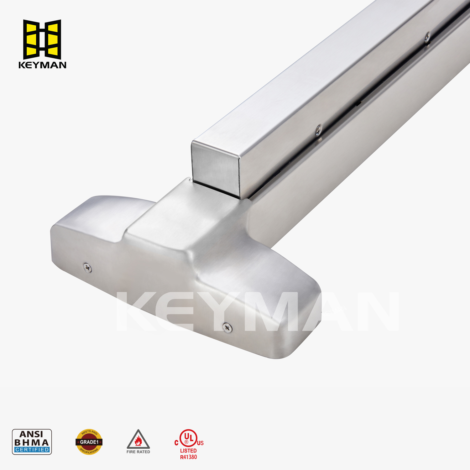 جهاز الخروج (شريط الدفع/لوحة اللمس): يسمح بالتشغيل الفوري أثناء حالة الطوارئ بضغطة بسيطة، مع الامتثال لقوانين سلامة الحياة (على سبيل المثال، ANSI/BHMA A156.3، UL 305). يضمن شريط الدفع أو لوحة اللمس المصنوعة من الفولاذ المقاوم للصدأ المتانة في ظل الاستخدام المستمر ويحافظ على مظهره بمرور الوقت.